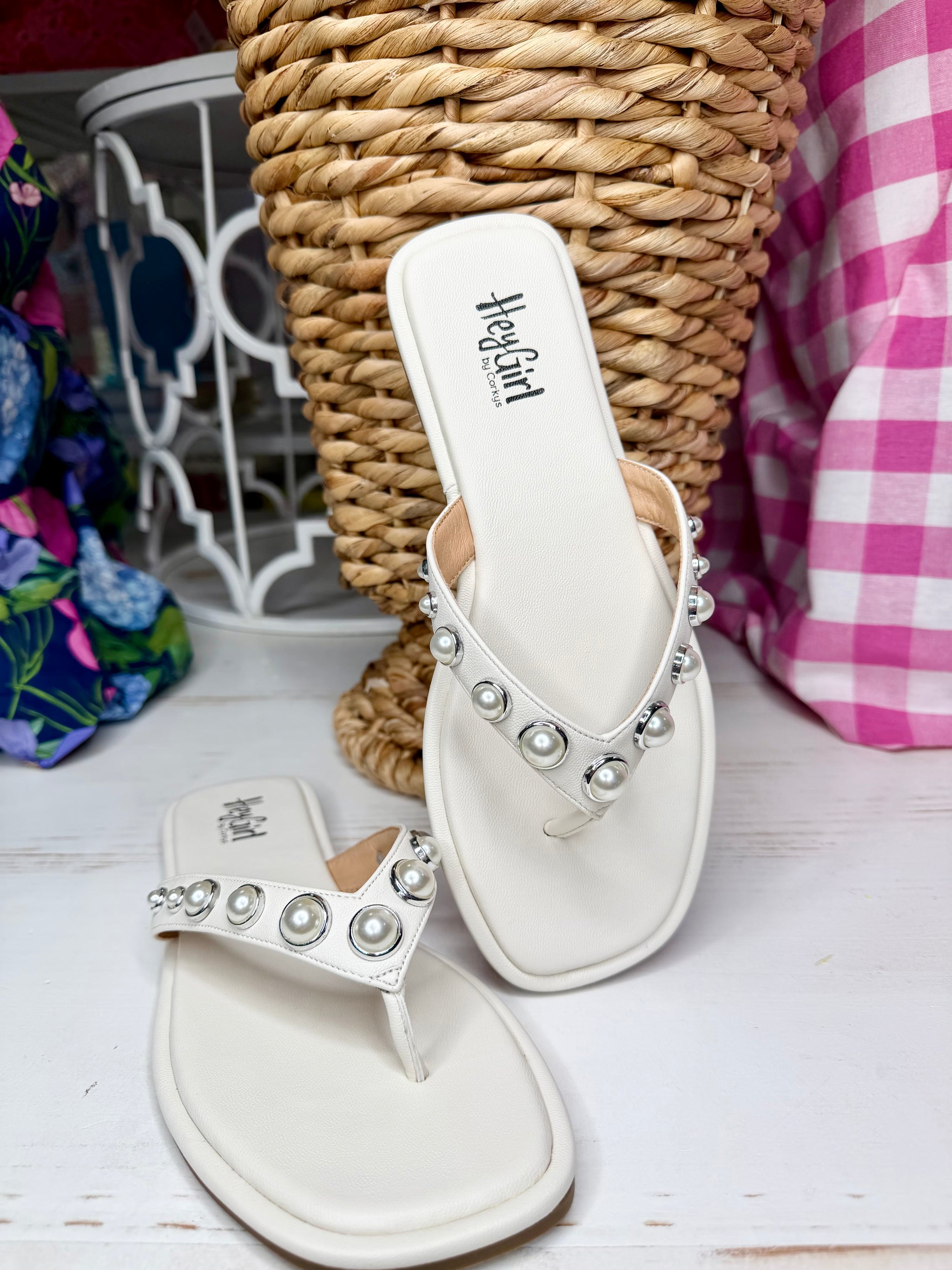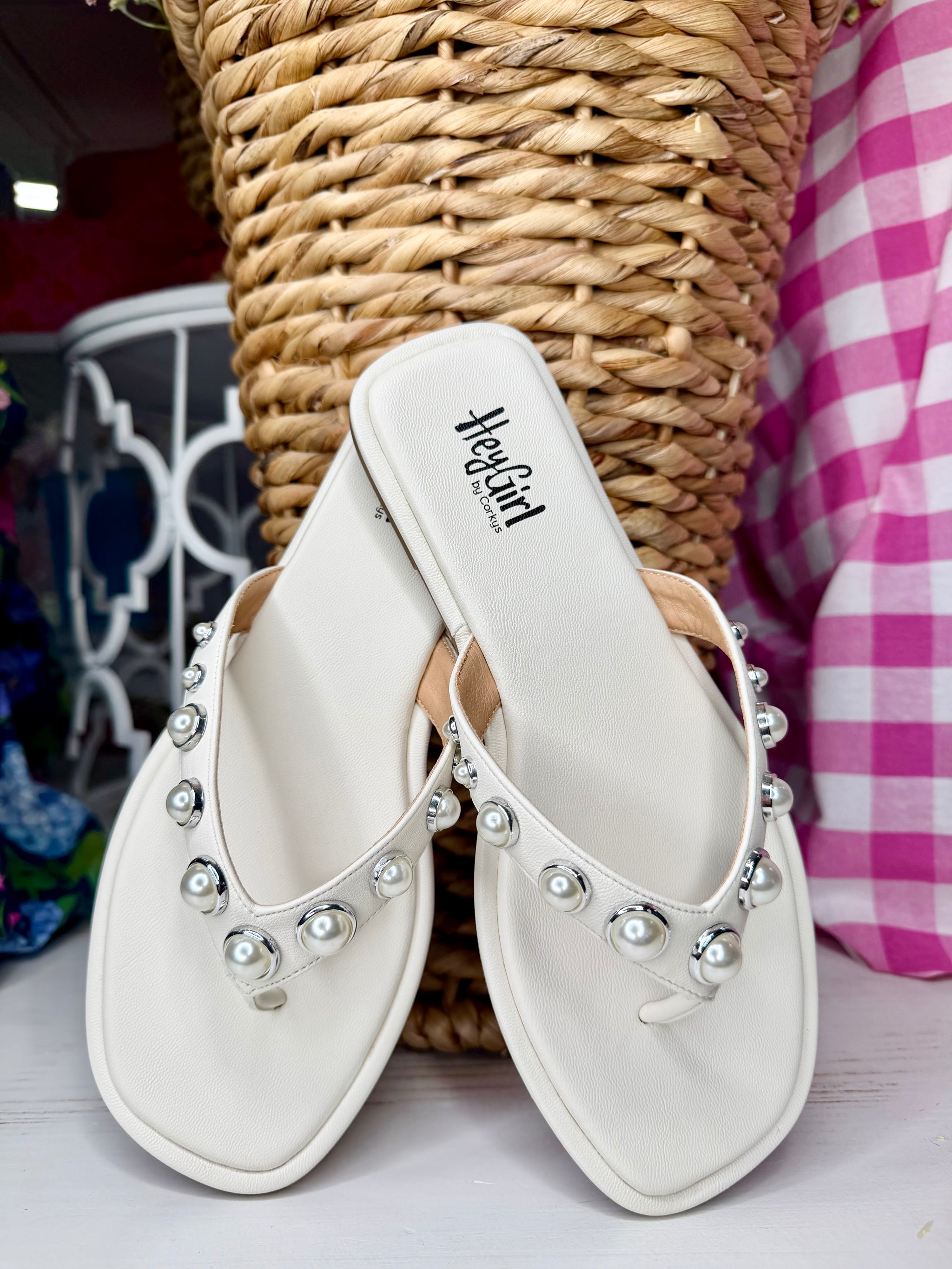 Elevate your vacation style with the Corkys Jump In Sandal, featuring chic WHITE straps and elegant pearl embellishments. These dressy...