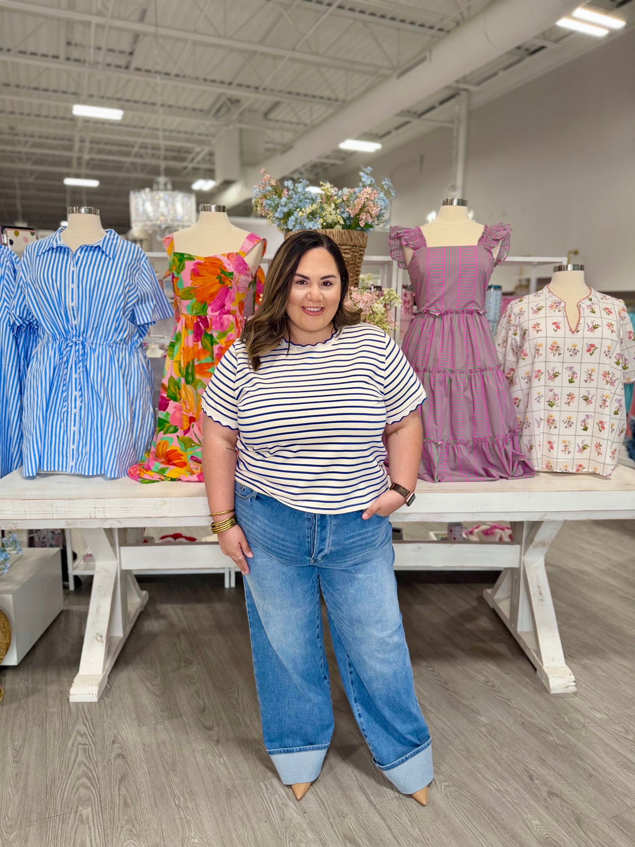 Elevate your spring wardrobe with the LILLY ROYAL Stripe Top, a charming piece that combines timeless style with modern flair....