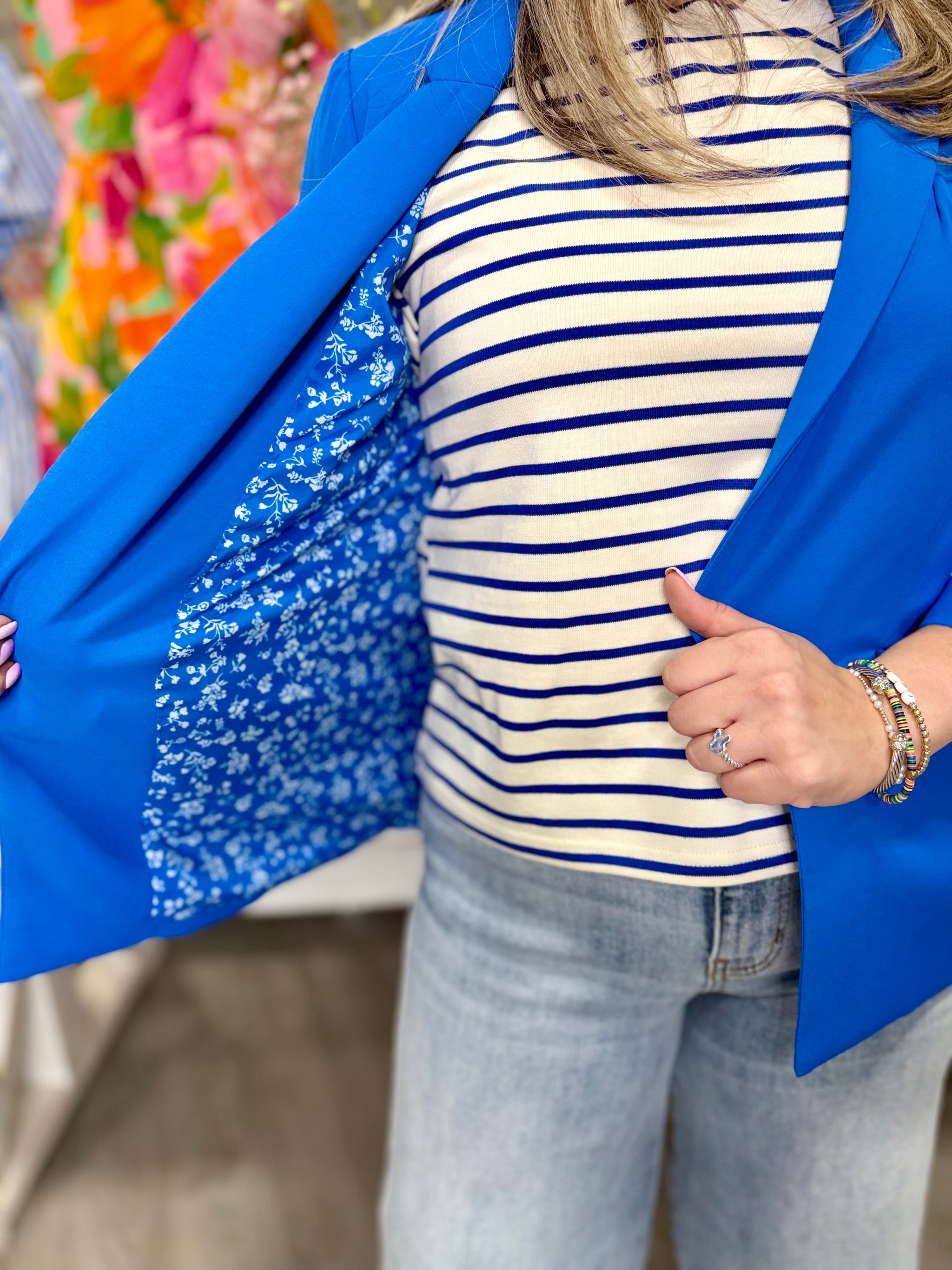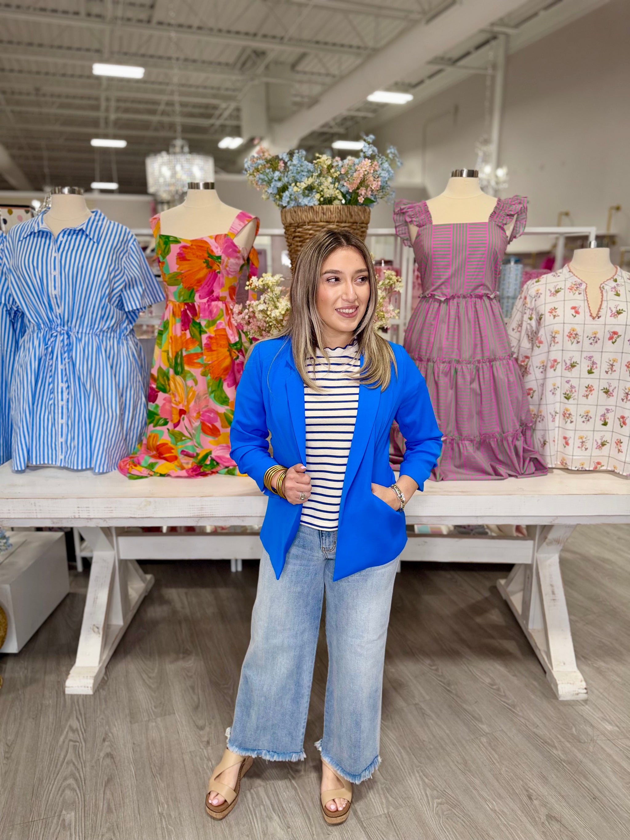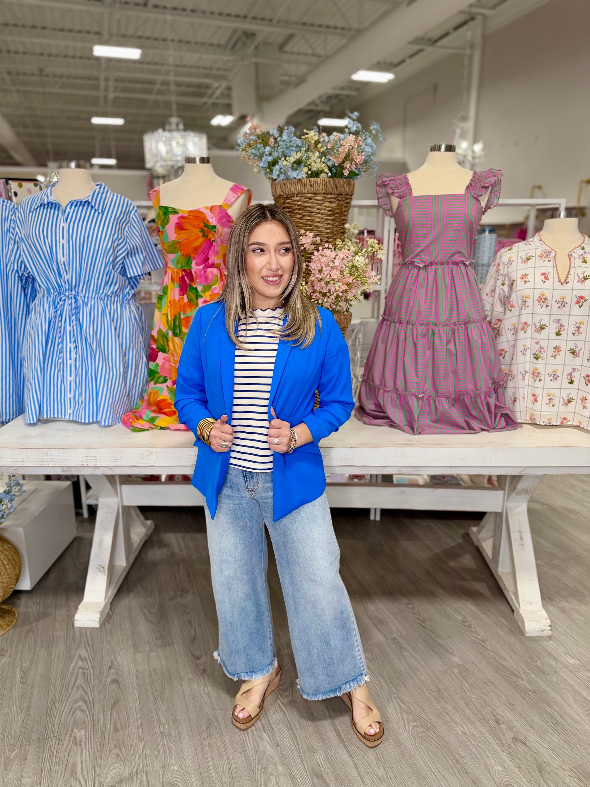 The Maddie Royal Blue Blazer is a timeless spring essential that effortlessly elevates any wardrobe. Crafted in a rich royal...