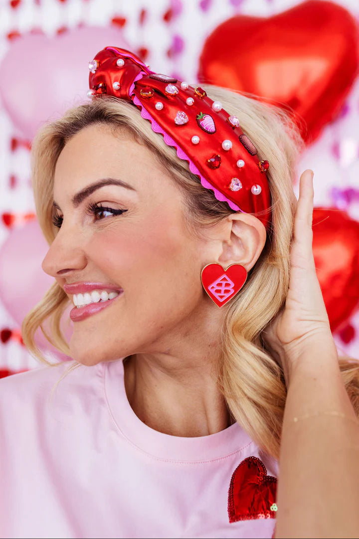 Box of Chocolate Headband with Hand-Sewn Red Hearts and Pearls Matches perfectly with our Valentine's Collection Comfortable & perfect for...