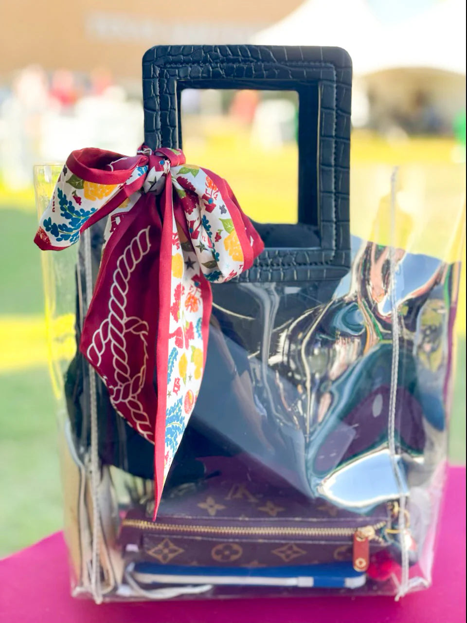 100% silk twill 2in x 36in Double-sided: our signature Aggie floral print paired with the maroon rope print Perfect to wear...