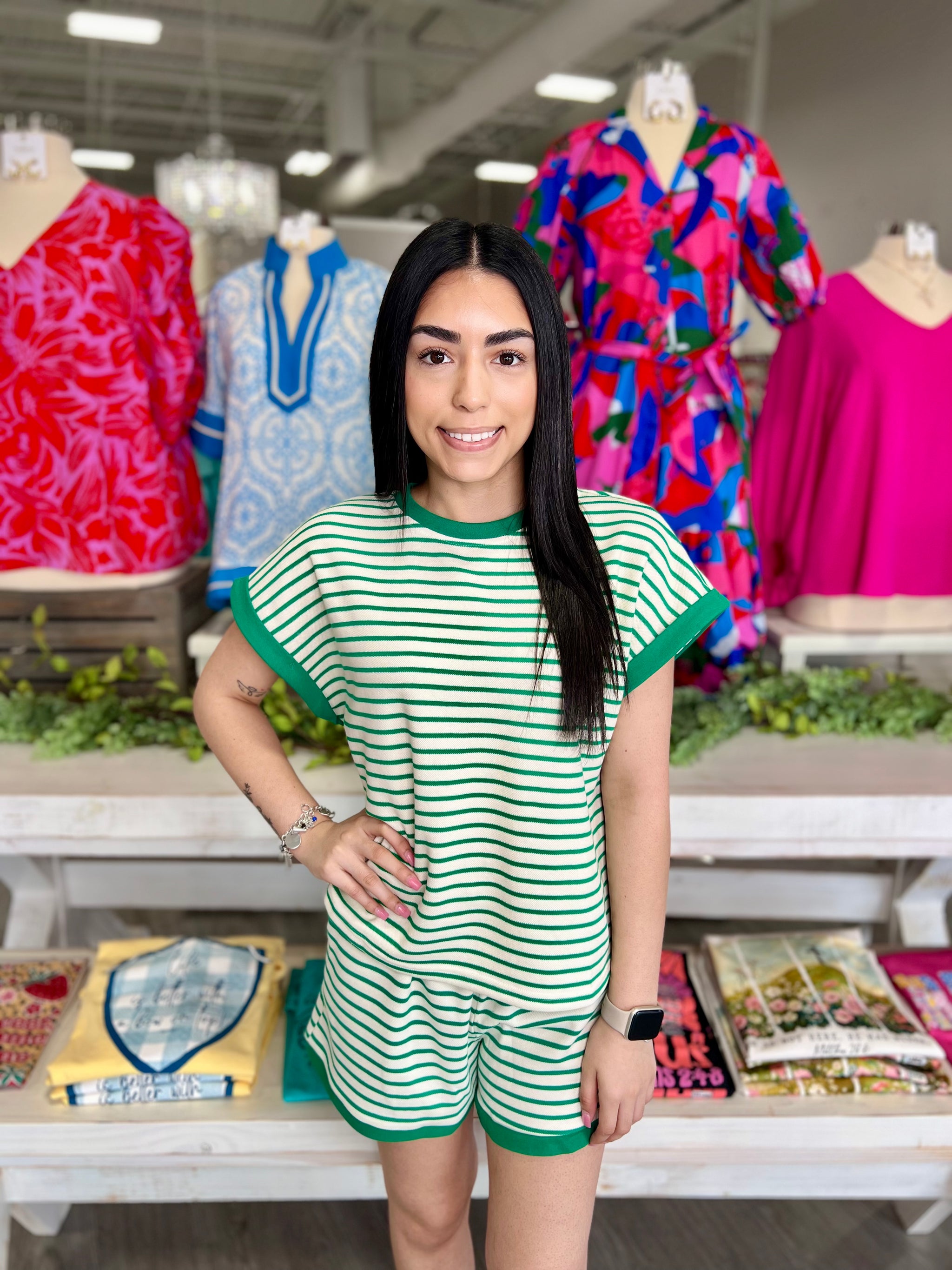 – Sold OutElevate your style with our Wendy Green Set! The vibrant green and white stripes will make you stand out from...