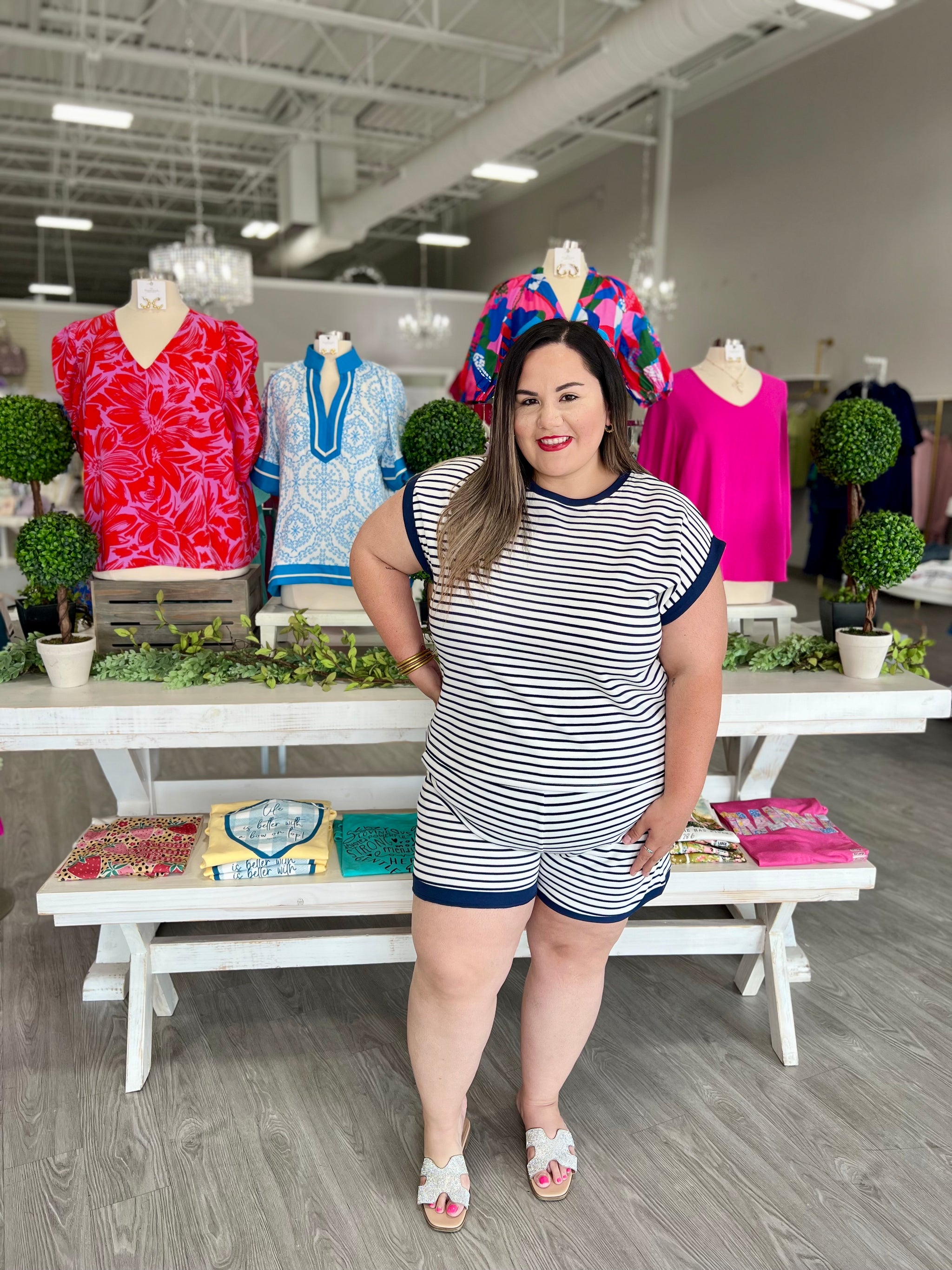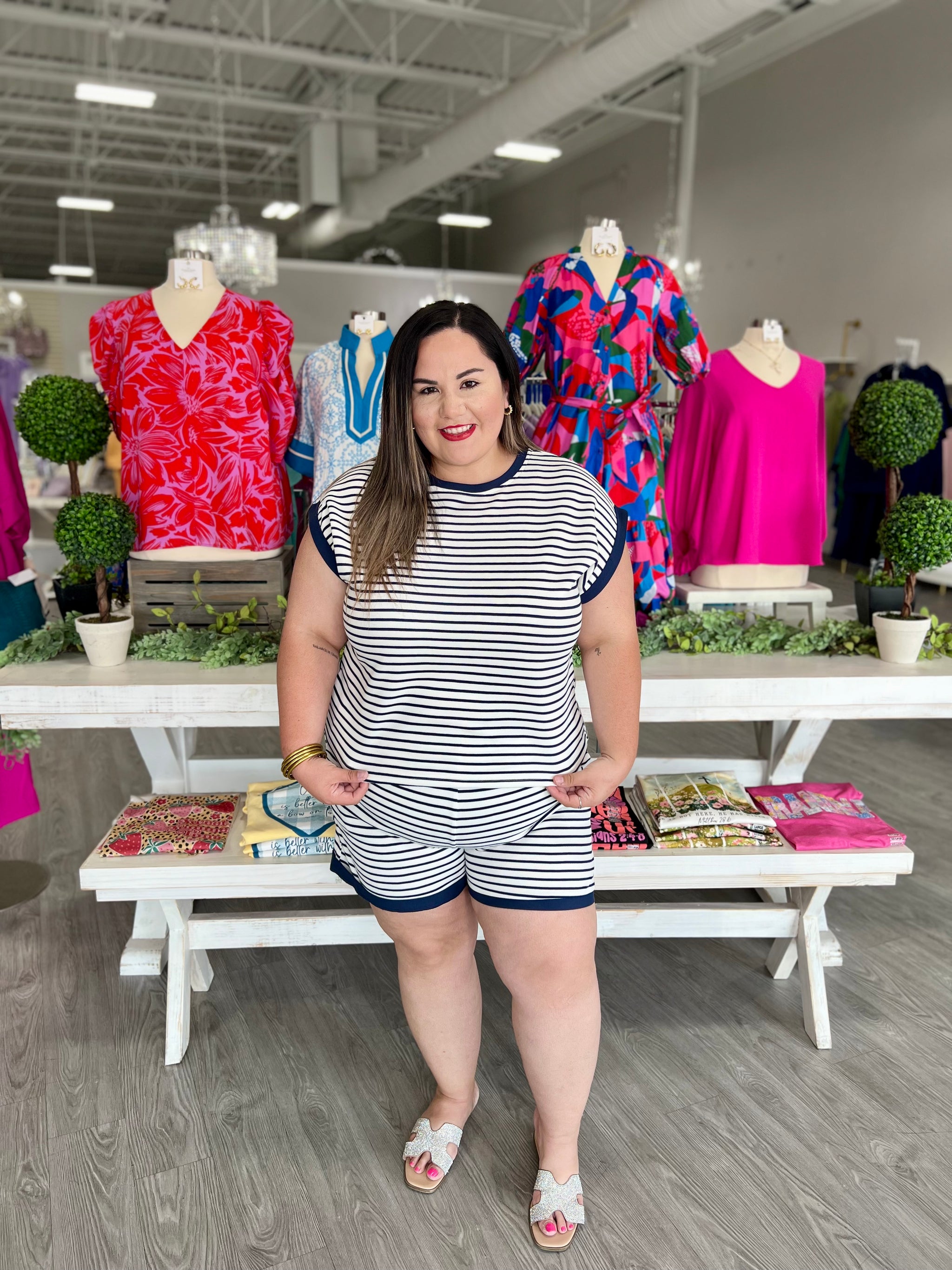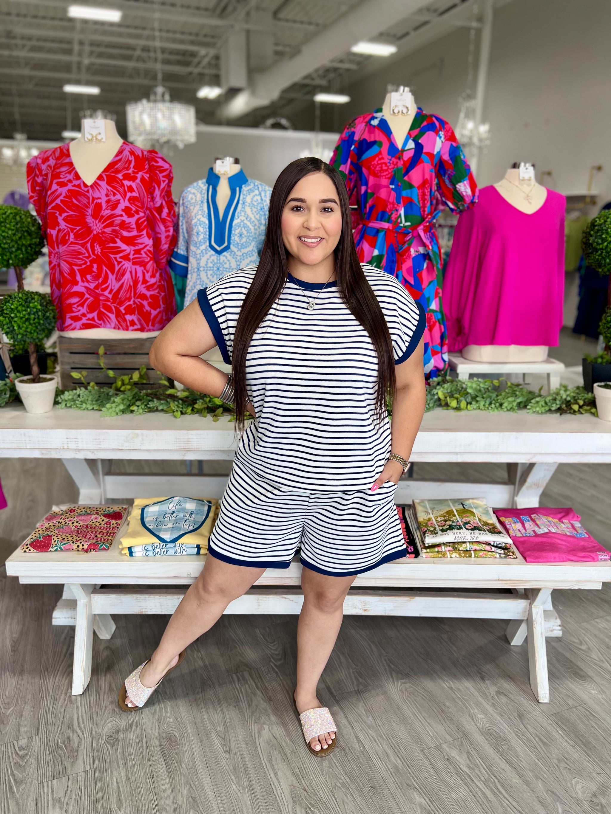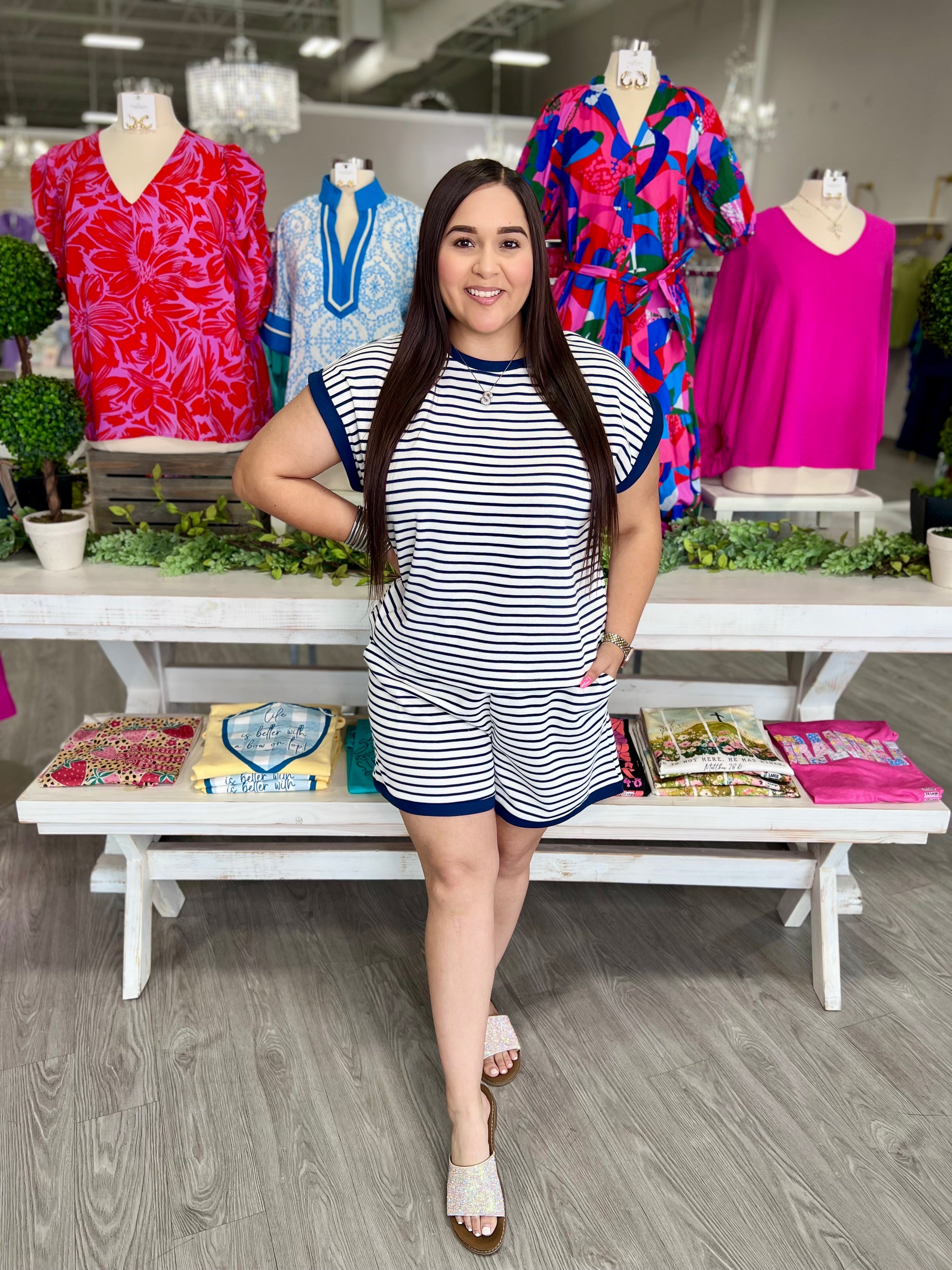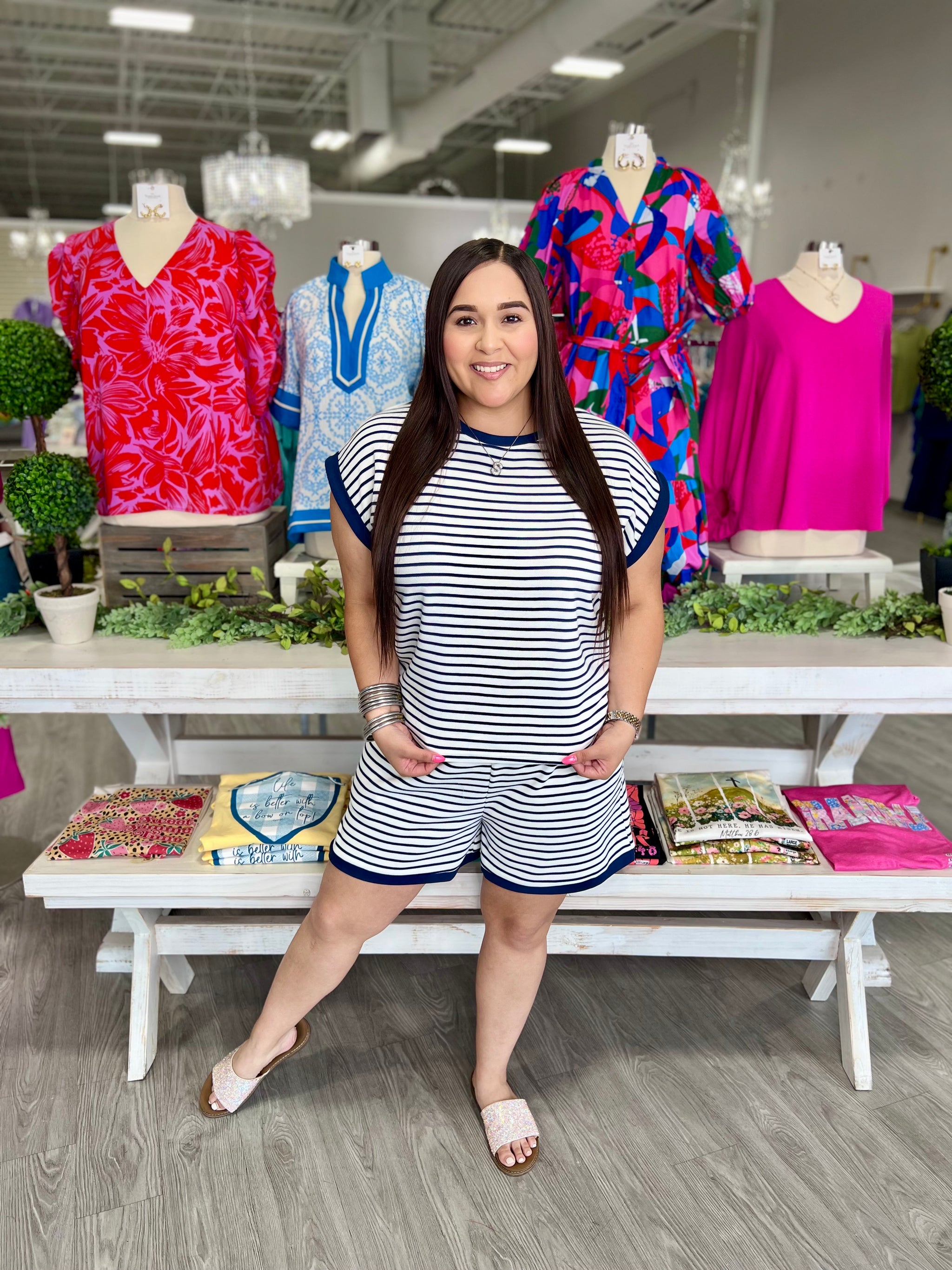 – Sold OutElevate your Memorial Day weekend style with our Whitney Navy Set. Featuring a stylish navy and white stripe design, this...