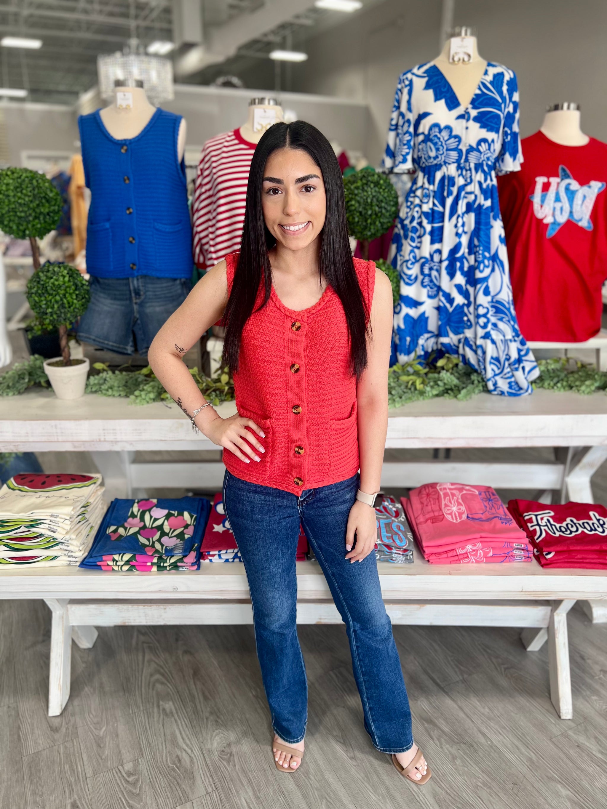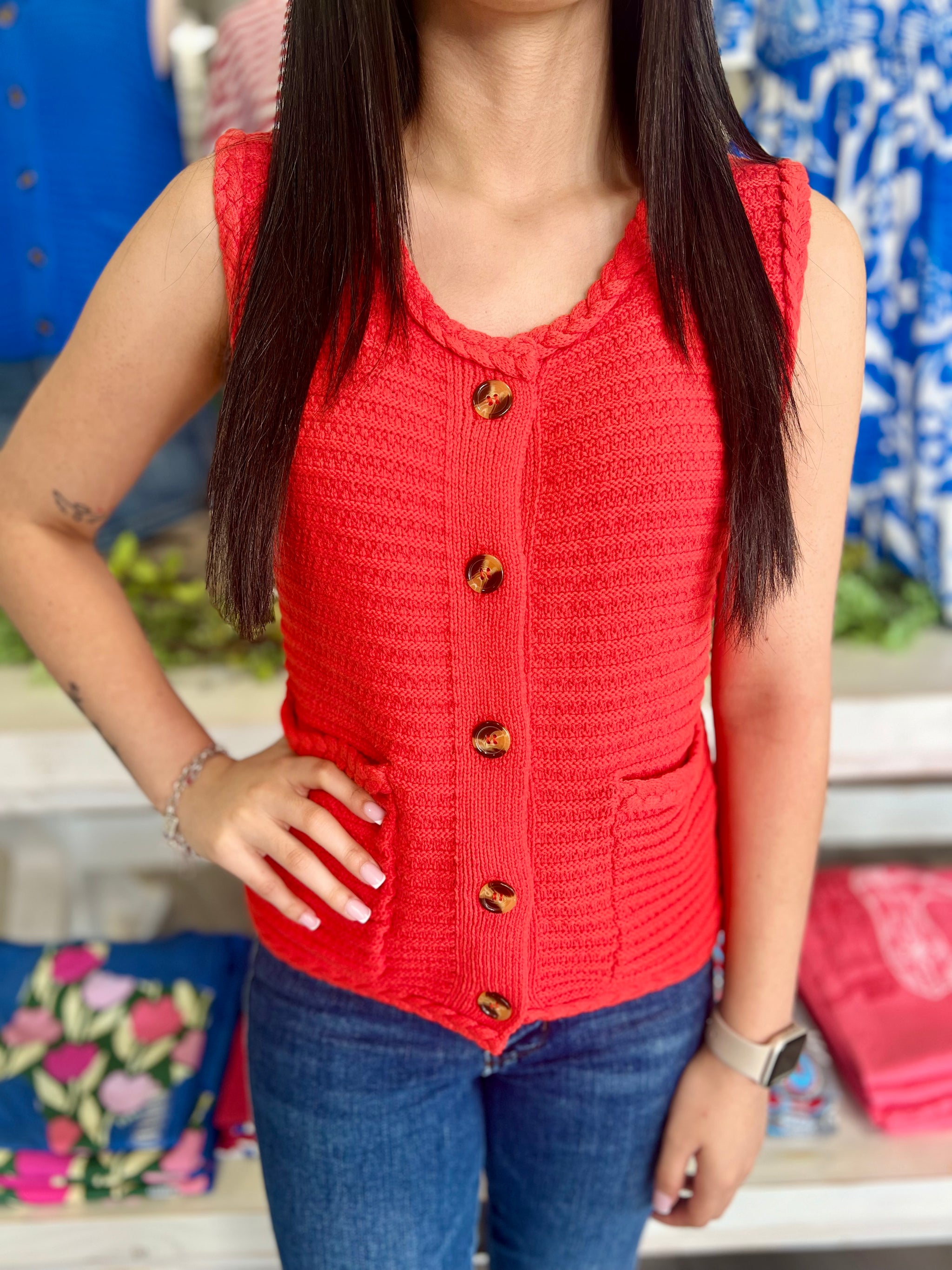 – Sold OutElevate your summer wardrobe with the ABIGAIL ORANGE VEST, a vibrant statement piece that demands attention at any gathering. This...