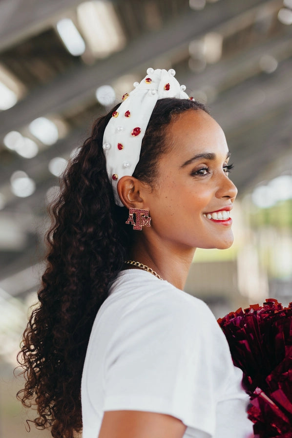 This is an Officially Licensed Collegiate Product Maroon Texas A&M University Pavé Logo Studs Measures 1.25" in length