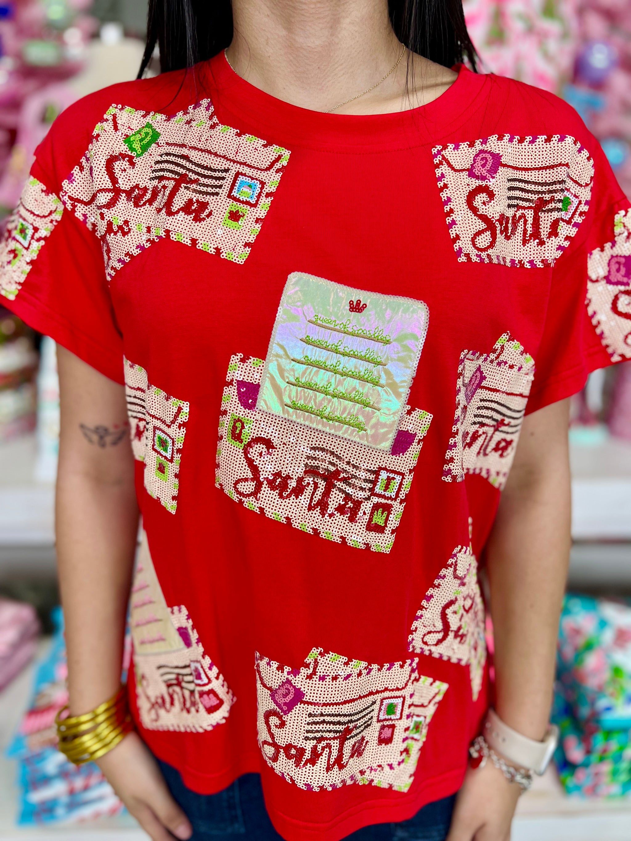 This vibrant red tee, part of our "Letters to Santa" collection, features dazzling sequin details that catch the light with...