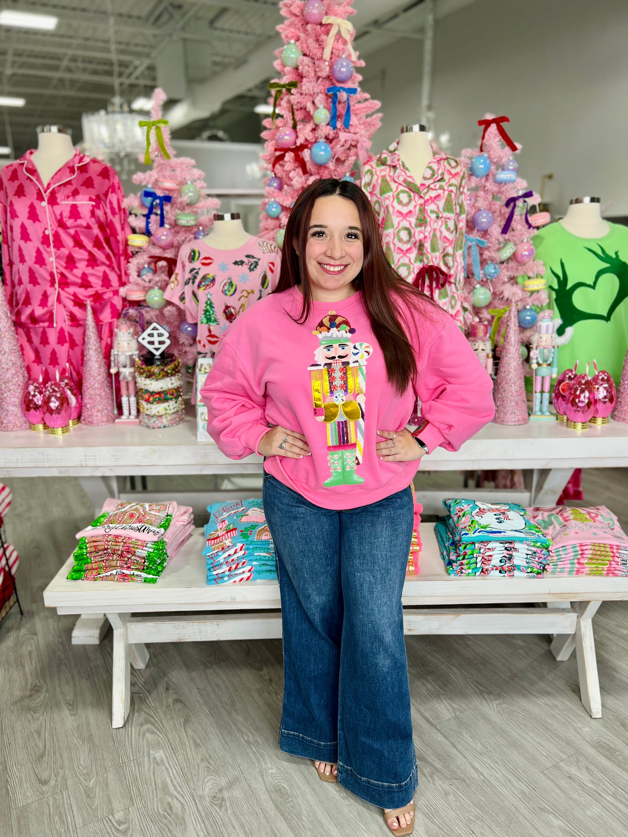 Add a touch of festive sparkle to your wardrobe with the Pink Candyland Nutcracker Sweatshirt. This cozy pink sweater features...