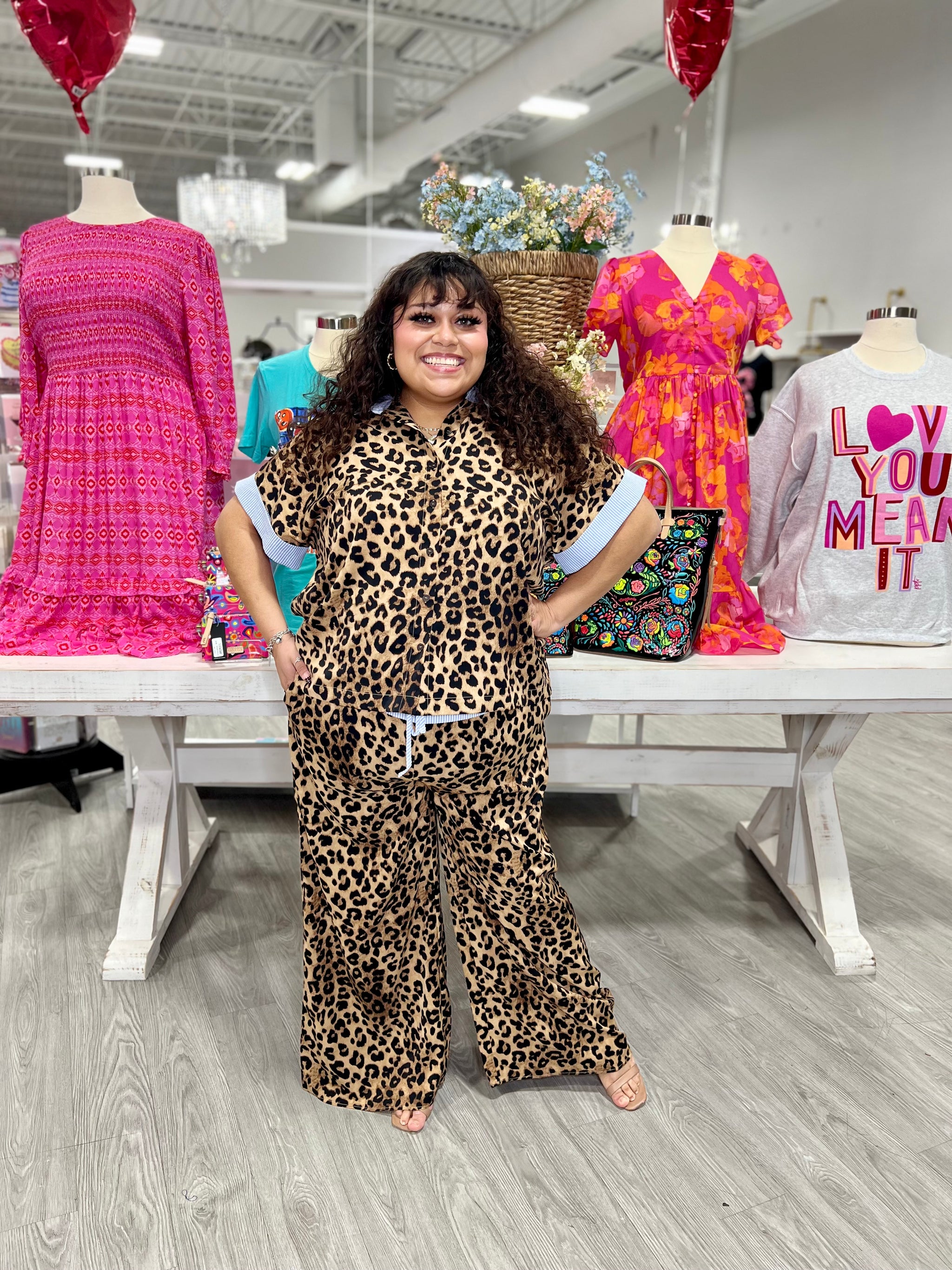 – Sold OutEmbrace wild elegance with the Amelia Leopard Set, featuring a striking leopard print paired with vibrant blue stripe accents. This spring essential combines bold pattern mixing with contemporary style, perfect for those ready to make a statement. The thoughtful blue details add a modern twist to a timeless animal print, creating a versatile piece that transitions effortlessly from casual outings to weekend adventures. Refresh your wardrobe with a set that celebrates confidence and individuality.